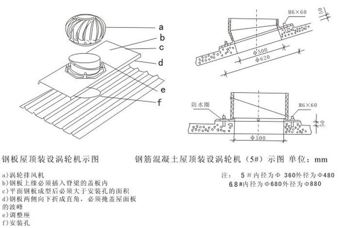 DWT-IV型无电机涡轮排风机安装示意说明