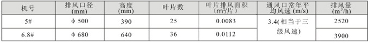 DWT-IV型无电机涡轮排风机性能参数表