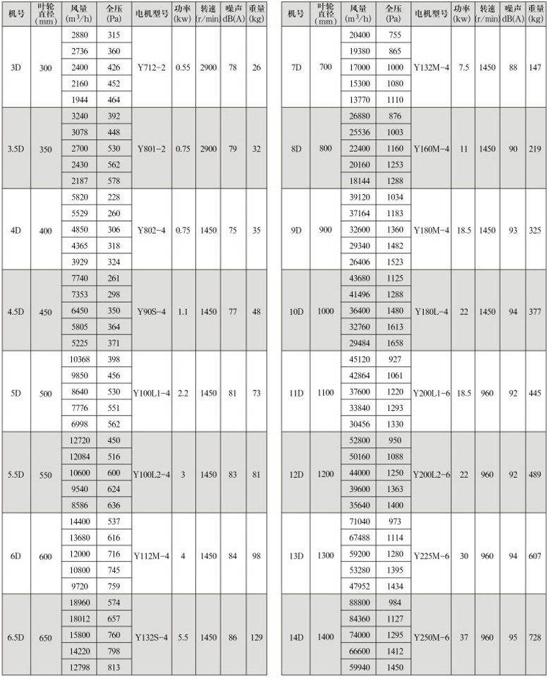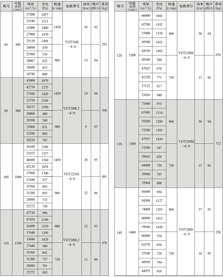 GXF系列斜流通风机按叶轮直径分为300-1400mm十六种规格,按类型分A、B、C、D、E、F、S七种类型,共五十八个机号。风量由1500mm-90000m3/h,全压由185-2500Pa;这样就给设计部门和也难怪乎单位提供了充分的选择条件,具体数据参照风机性能参数表。