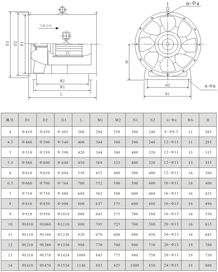 GXF-S系列双速斜流式通风机外形及安装尺寸
