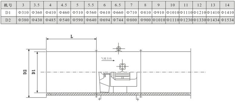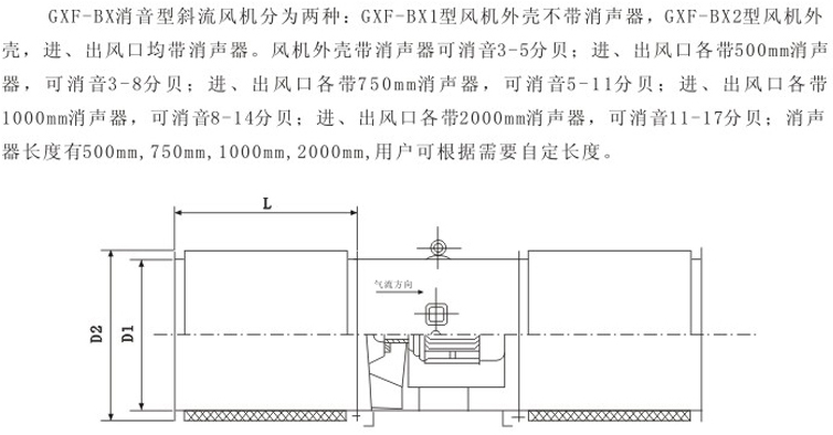 GXF-BX2消声型斜流风机安装尺寸(mm)