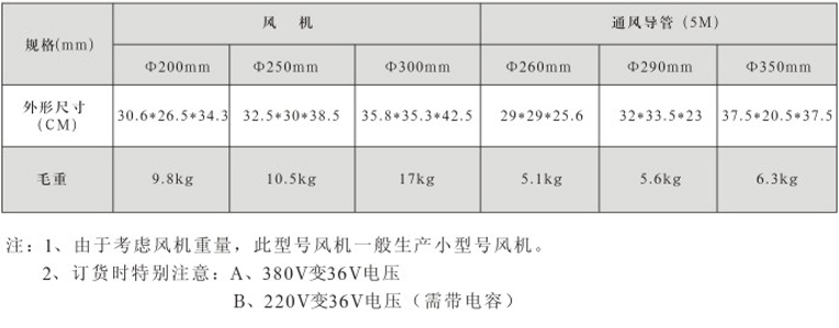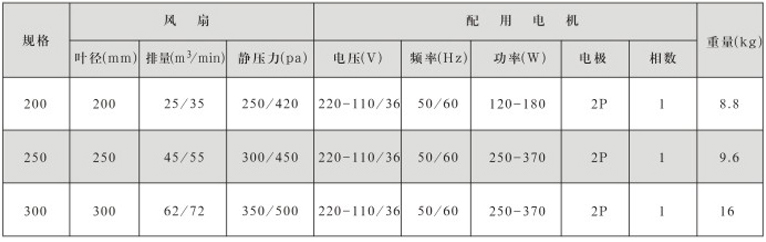 风机直径:Φ200~300mm,
