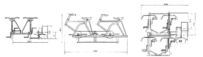 b、机架:机架由齿轮箱、链轮、鞍座和把手构成。结构见外形图。传动装置都按较高精度制造,以获得较高的机械效率。电动、脚踏转换由拨动齿轮箱换挡把手实现。