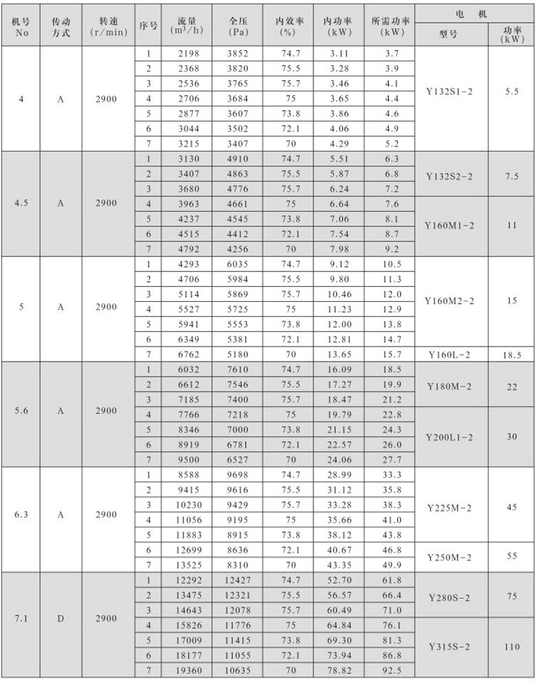 9-26系列高压离心通风机性能参数与选用配置表(2)