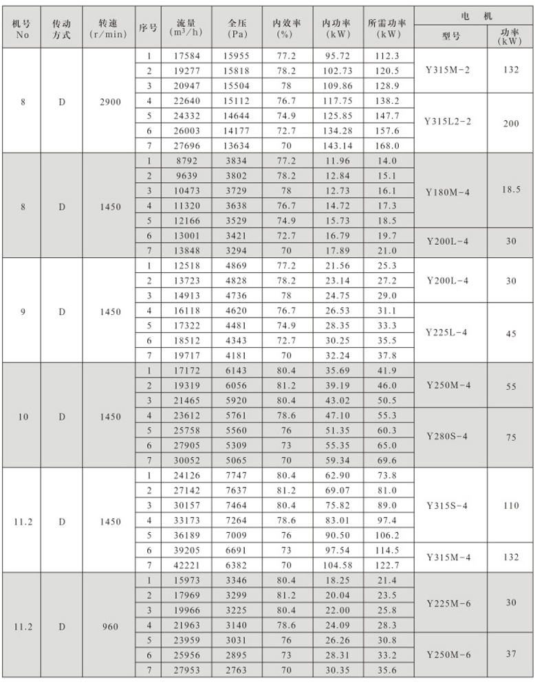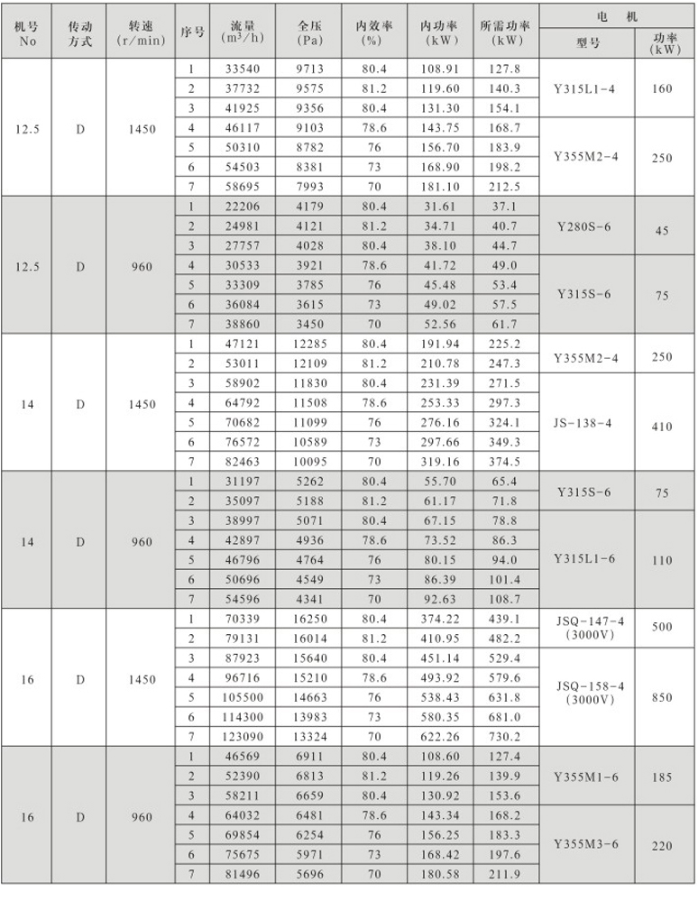 9-26系列高压离心通风机性能参数与选用配置表(1)