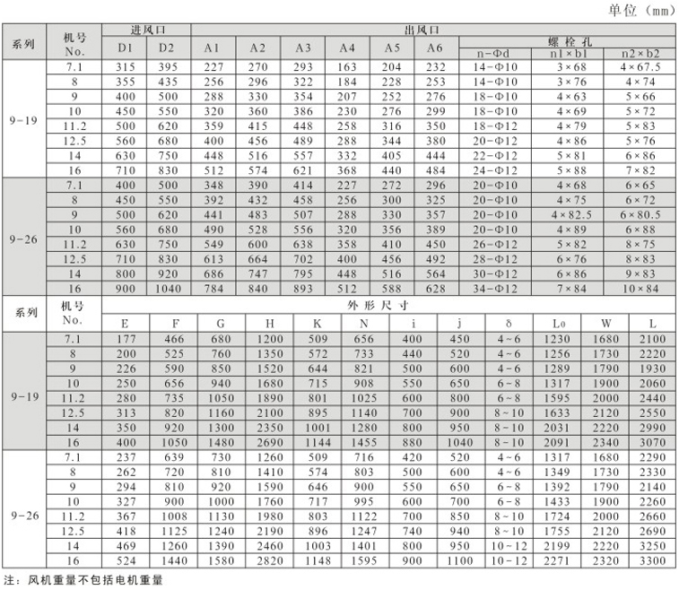 9-26系列No.7.1~16A高压离心通风机安装及外形表