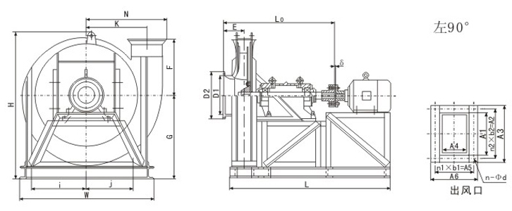 9-26系列No.4~6.3A高压离心通风机安装及外形图